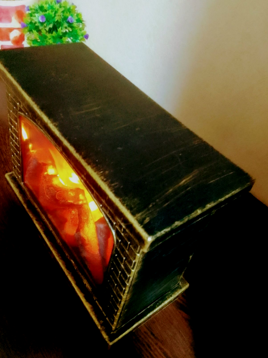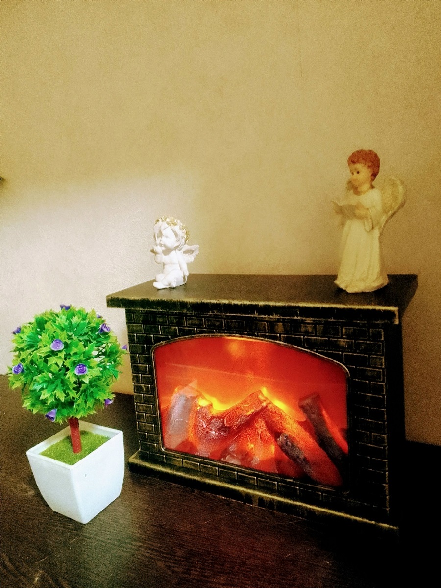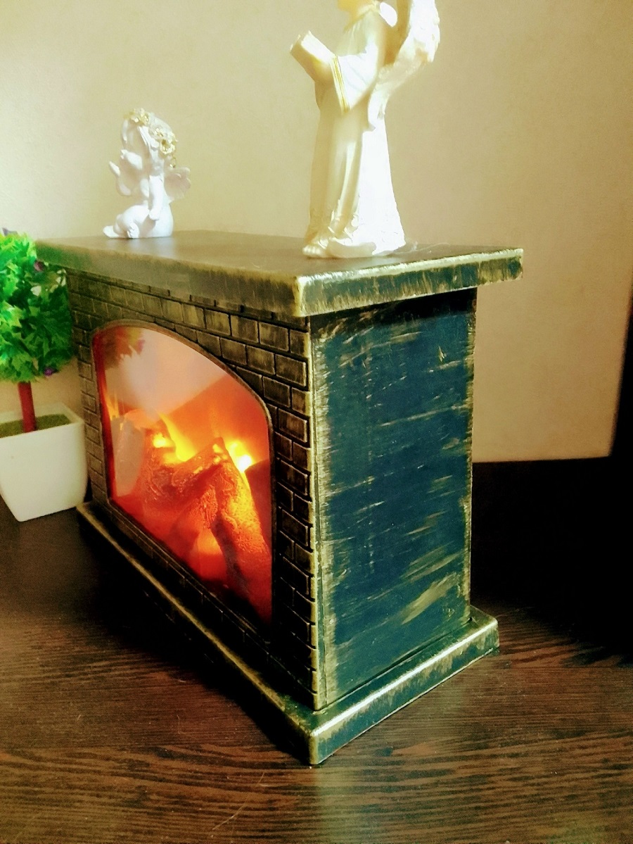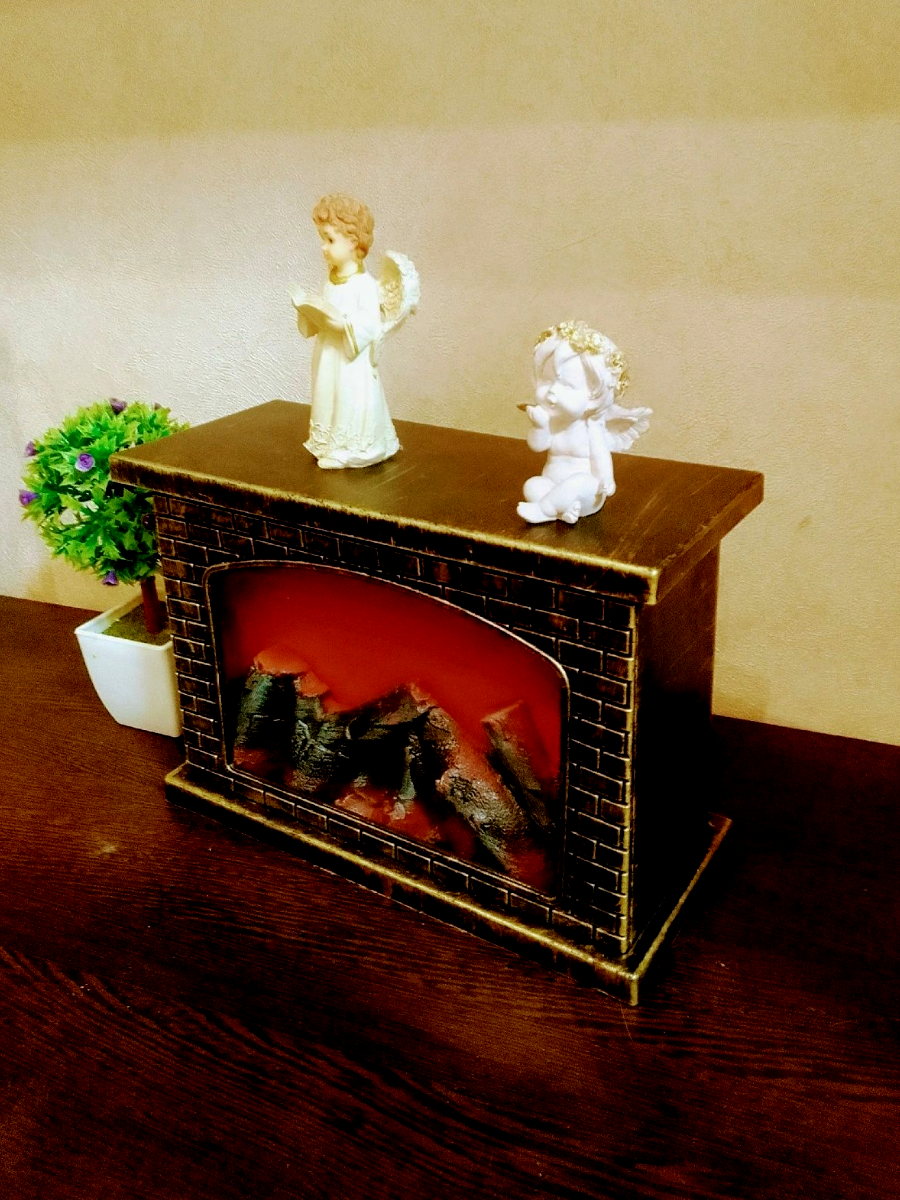 - Камин светодиодный: живой огонь, патина золотая бронза