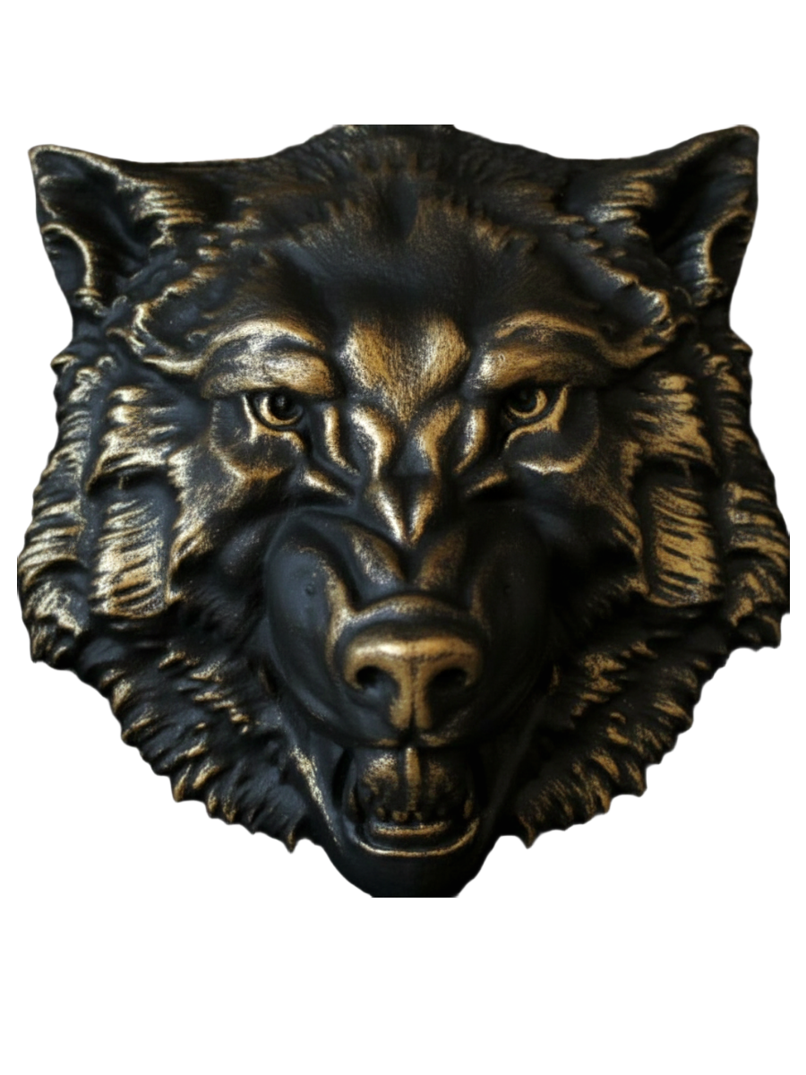 Кованое изделие Голова Волка патина золотая бронза, ручная работа.